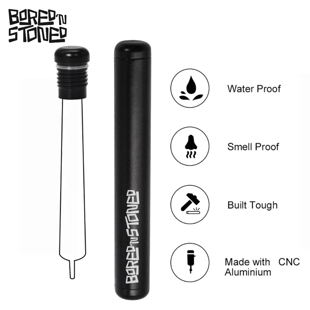 Mit dem Bored’n Stoned Joint Case aus hochwertigem Metall bist du bestens ausgestattet, wenn es um stilvolle und praktische Aufbewahrung geht. Das Case, mit einer Länge von 110 mm, verfügt über zwei Schraubgewinde an den Enden, die für einen sicheren Verschluss sorgen. Ein Ende ist speziell für den Halt des Joints konzipiert, um ihn perfekt zu schützen. Das schlichte Design in Schwarz verleiht dem Case eine elegante Note.